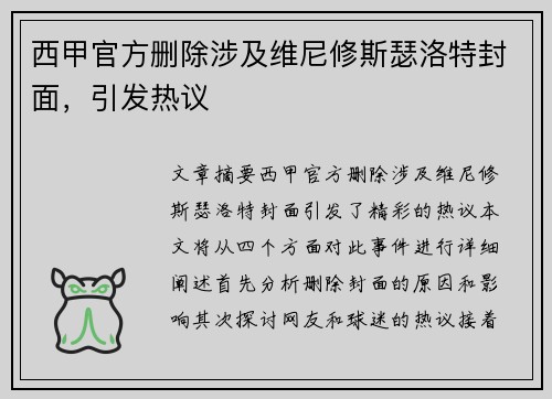 维护皮奥利!招聘葡籍主帅,超越C罗的引援维度**摘要**本文将从四个方面详细阐述维护皮奥利!招聘葡籍主帅,超越C罗的引援维度的重要性。首先,分析葡萄牙国家队的战术体系和葡萄牙足球教练的特点;其次,探讨C罗对引援的影响和葡萄牙国家队的发展战略;第三,分析皮奥利离开对球队的影响和葡萄牙足球发展所需的主帅特质;最后,介绍超越C罗的引援维度对球队未来的重要性。**1、葡萄牙国家队战术体系与教练特点**1、...